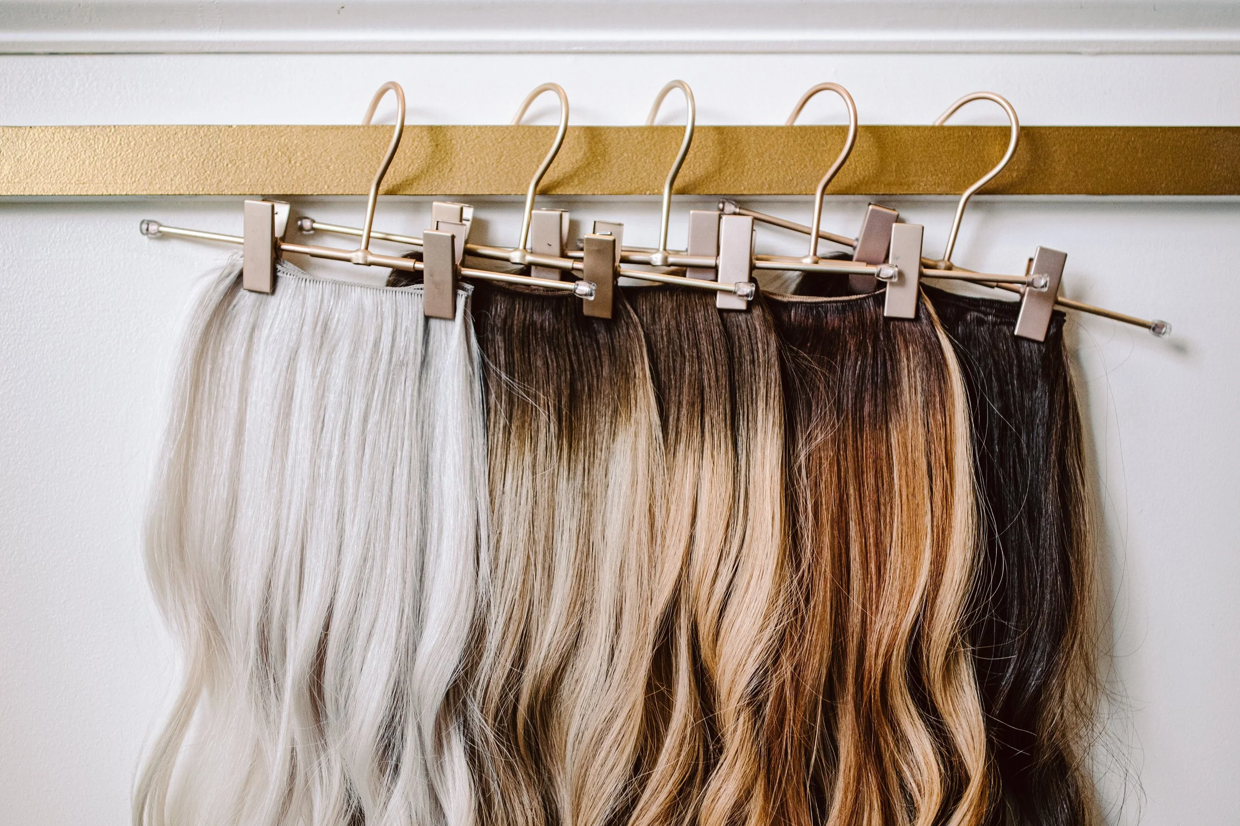 Weft extensions are priced based on the number of wefts needed and the installation required. Extension hair is priced per weft, ranging from $115 to $145 each, depending on length and density.